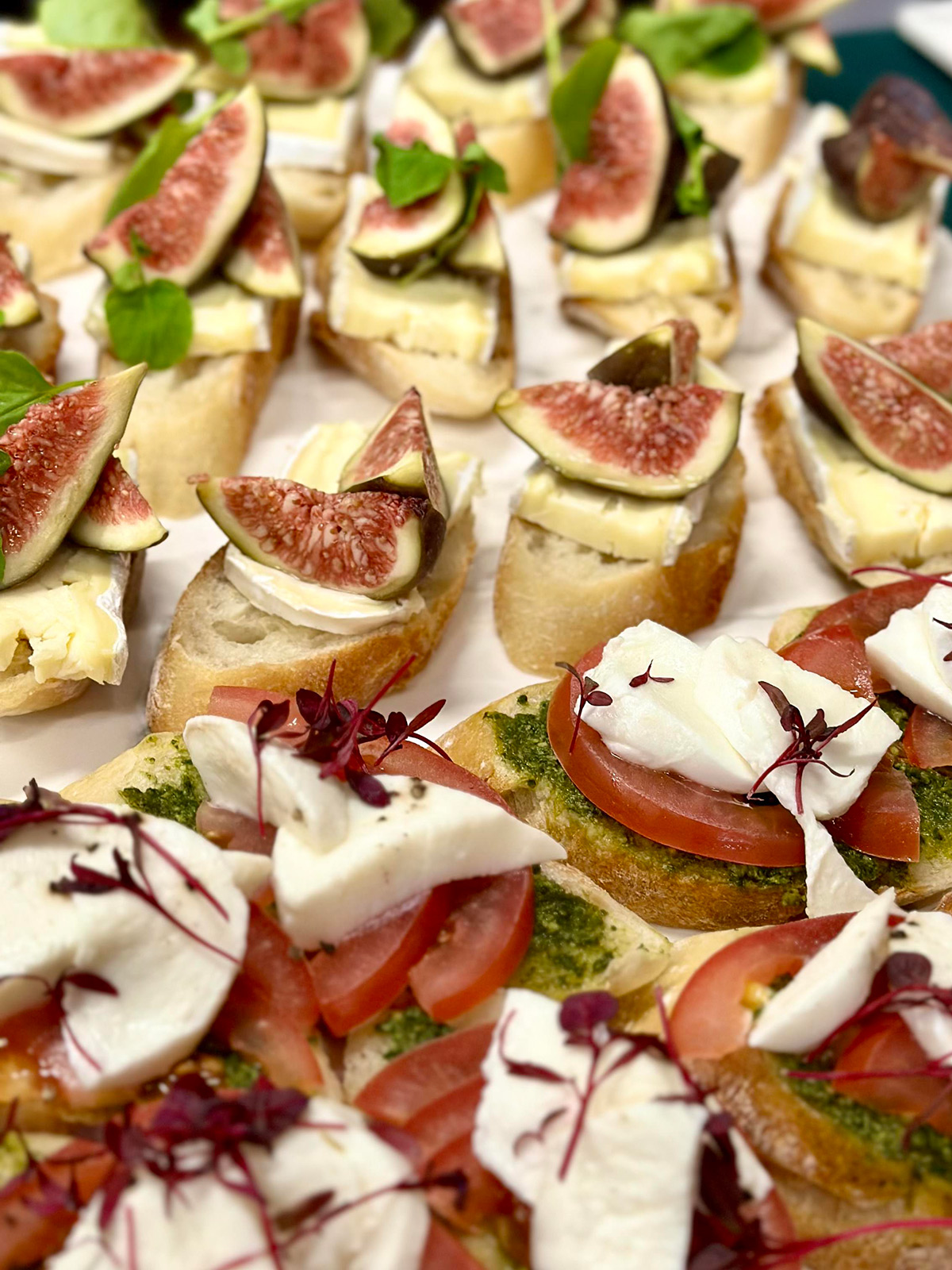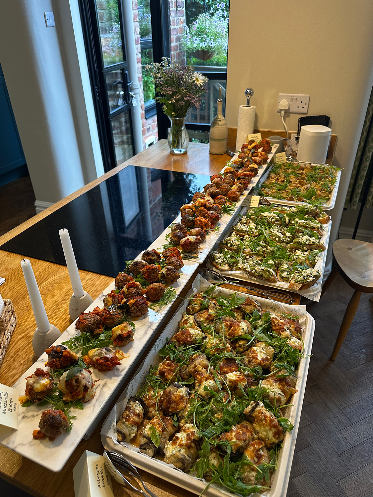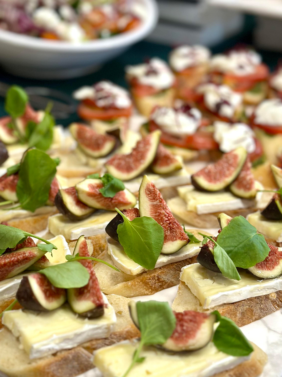 Green pesto, red pepper pesto, lemon & garlic marinated olives, marinated bocconcini, sliced fennel salami, black olive tapenade, crostini, sun blushed tomato, mortadella, taleggio cheese, caprese salad, pecorino, rocket & parmesan salad, focaccia, balsamic & oil, dripping oil, tomato, radicchio & basil salad, tender stem broccoli with almonds, bread sticks, bruschetta